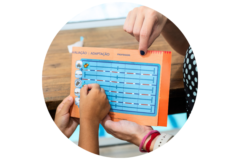 Nossa metodologia vai além da piscina: organizamos o seu espaço pedagógico, estruturamos suas turmas e garantimos o acompanhamento contínuo da evolução dos alunos.